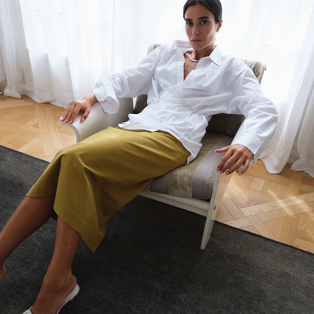 Découvrez toute la collection Automne de vestes et manteaux pour Femme de Musier. Un indispensable de votre garde-robe cette saison : le trench sera votre compagnon au quotidien: qu'il soit en daim camel, en coton vanille, ils viennent tous de notre iconique trench kaki DOROTHEE. Retrouvez nos différents modèles de vestes et manteaux : bombers en cuir oversize noir, veste droite double boutonnages en lainage vanille. Les vestes et manteaux Musier Paris sont conçus pour être portés dans le cadre professionnel, comme pour un apéro entre amis ou un rendez-vous amoureux mais également pour couvrir nos robes de soirée. Associés à nos pantalons & shorts ou jupes, comme une jupe longue en satin et dentelle ou un pantalon taille basse en chevron, notre trench DOROTHEE jeté nonchalamment sur les épaules, se portera toute la saison.