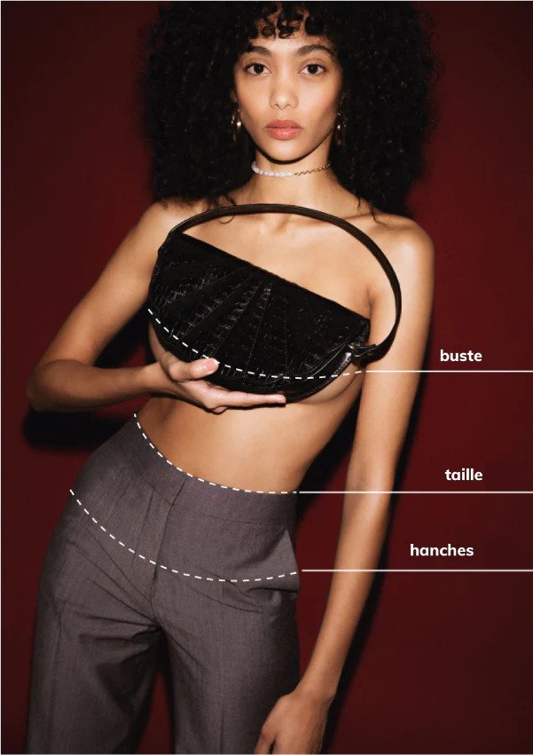 Pour obtenir votre tour de poitrine, passez le ruban à mesurer au-dessus de la pointe des seins. Faites bien attention à passer le ruban en dessous de vos bras et non pas autour pour trouver votre ajustement parfait.